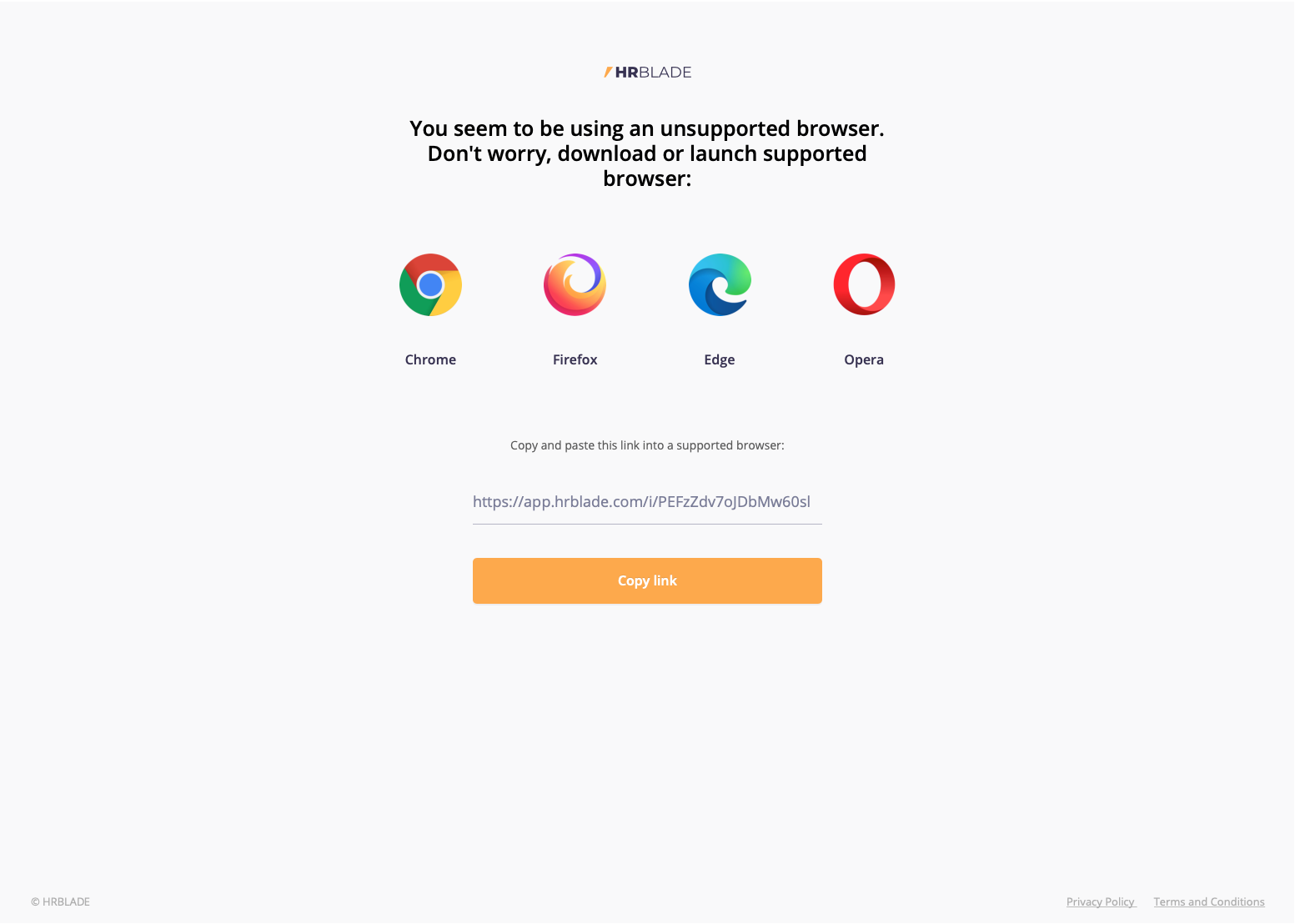 We recommend using Google Chrome, but if you are using a browser that does not support video recording, you will receive a message that you need to download and run one of the well-known browsers. After launching the browser, copy the link to the interview into the browser bar and you will be taken to the interview.